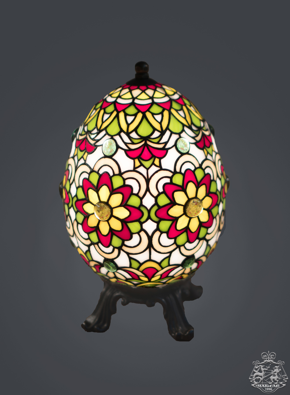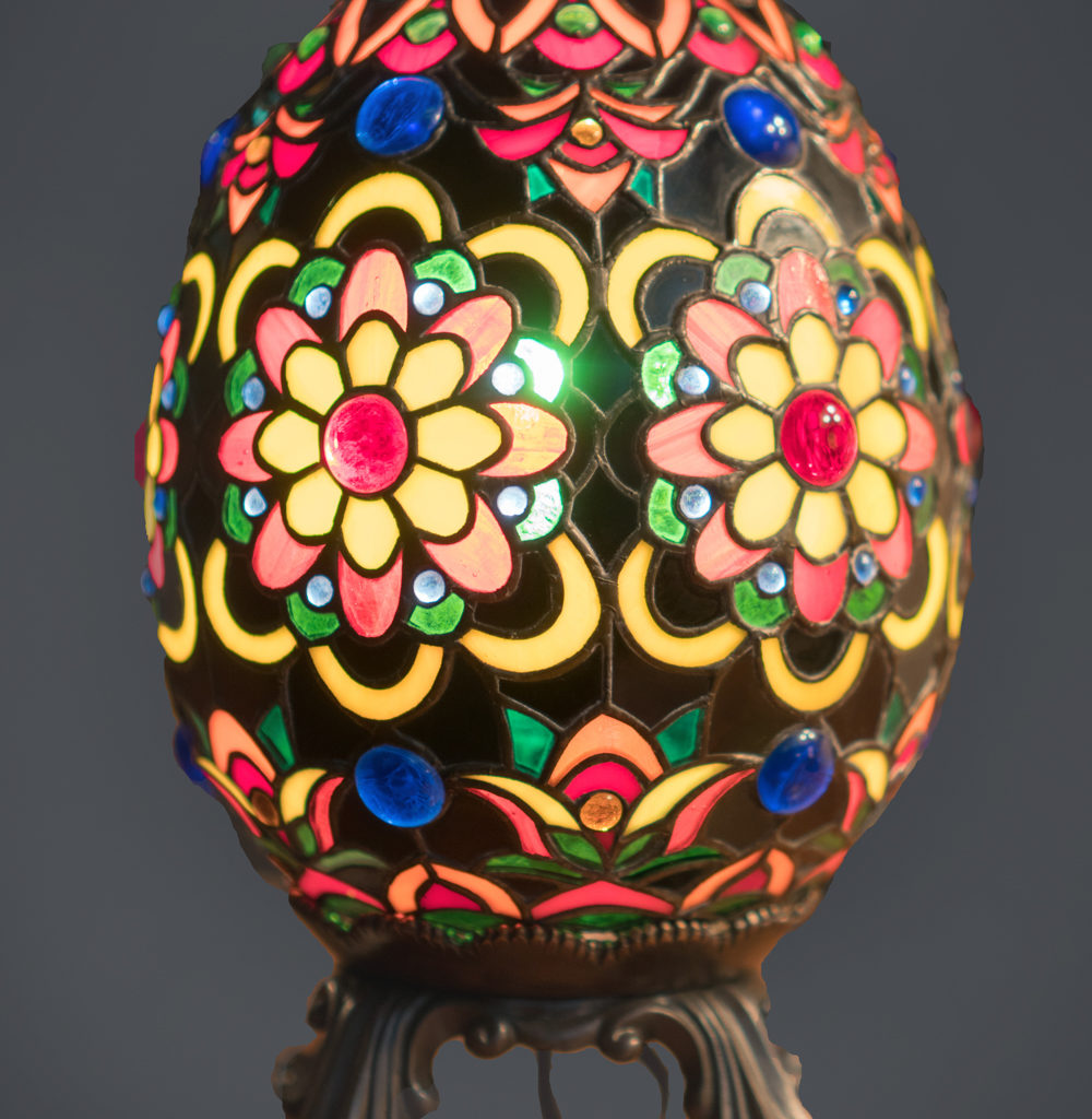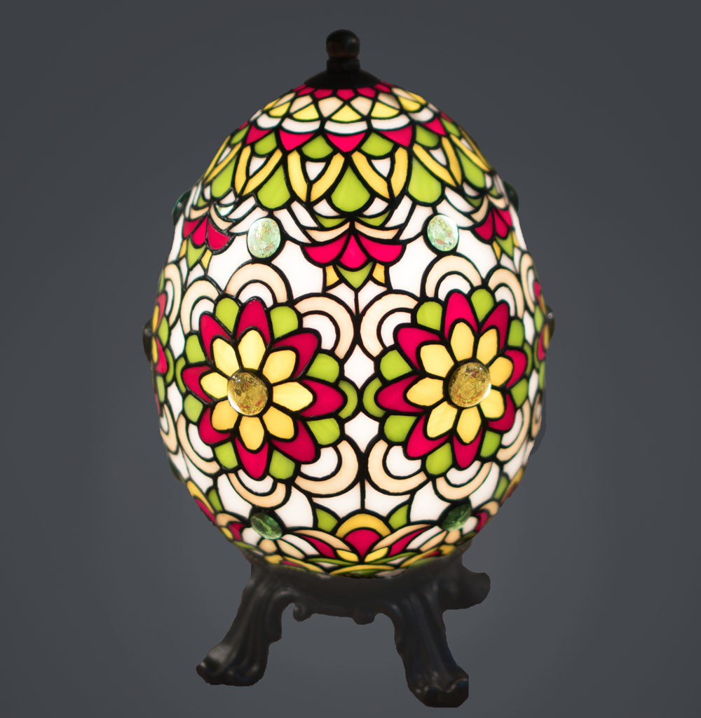 Класична лампа в стилі Фаберже, виготовлена за технологією тіффані, в ювелірній техніці. Лампа складається з 700 деталей, багато хто з них не перевищують 1 дюйма. Виключне якість ручної роботи.